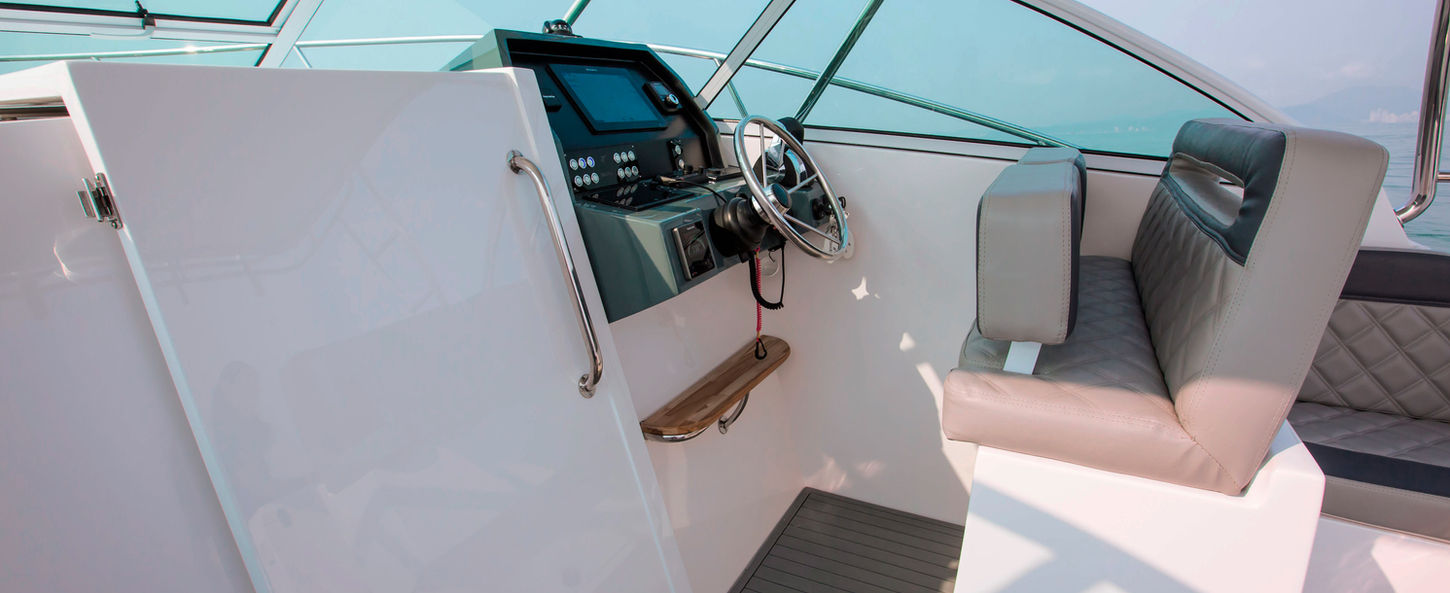 The most versatile boat in its category, with a large aft area, equipped gourmet area, cabin with bedroom, kitchen and bathroom, all designed for maximum comfort for all passengers on board.